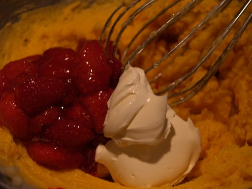サワークリームとイチゴの生地にして