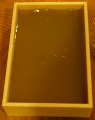 無調整の豆乳に、カラメルソースをほんのり香る程度混ぜて