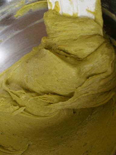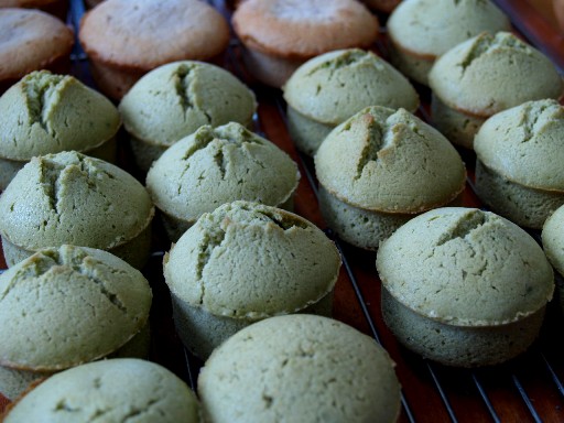 地元の緑茶粉末を混ぜあわせました。