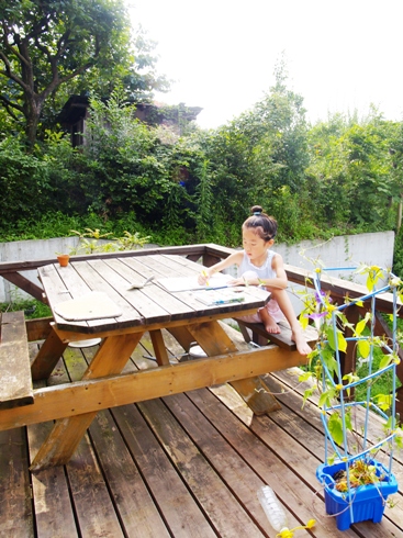 汗をかきながらも 娘が手伝ってくれるので