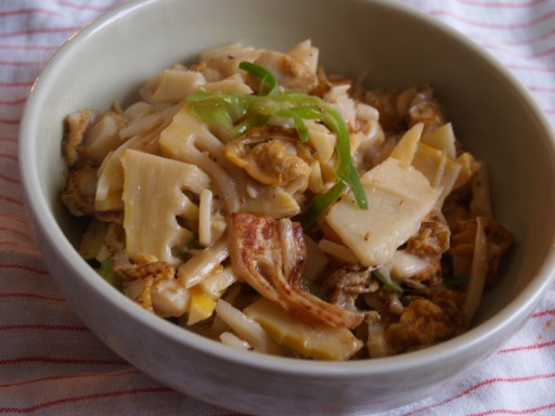 竹の子をはじめに少し多めの油でカリっと仕上げてから炒めるのがコツ。